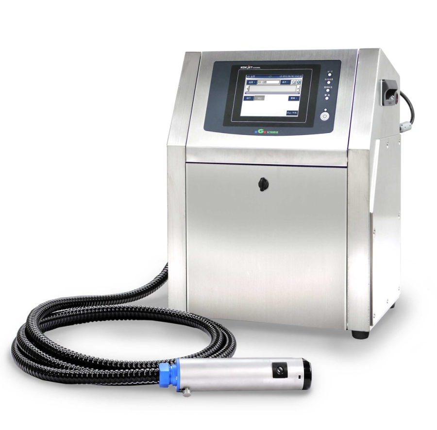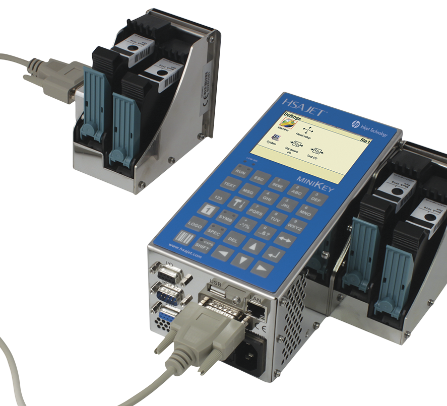 Impresora con pantalla LCD de 320 X 240 pixels y un teclado de membrana desde el cual se configuran los parametros y mensajes a imprimir. puede controlar hasta 2 cabezales indenpendientes con un maximo de 2 cartuchos en cada cabezal. conexiones de red Via RS232 y Ethernet y puerto USB para carga de mensajes.